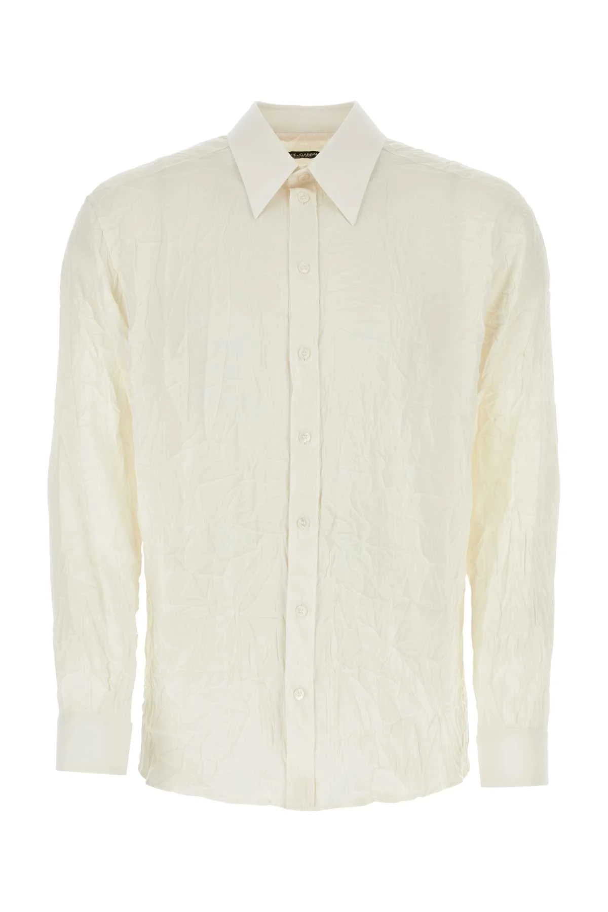 Dolce & Gabbana Men Ivory Stretch Silk Shirt