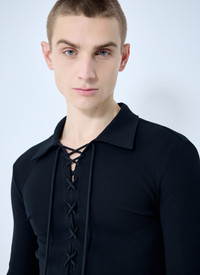 Long-sleeved interlock jersey polo-shirt with laces