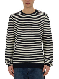 Striped-print round-neck cotton sweater