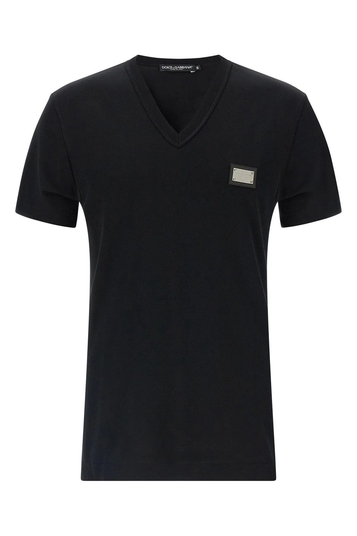 Cotton T-shirt, leather patch with front metal logo plate, V-neck, short sleeves. Color: Black Size & Fit: true to size fit Composition: 100% cotton Made in: Italy SKU: G8PT2TG7F2IN0000 Our Products Are 100% Genuine. In All Cases We Stand By The Authenticity Of Every Product Sold On Our Site. All sales are final and we only accept returns for quality issue. Buyer is responsible for any import tax/duty if applicable.