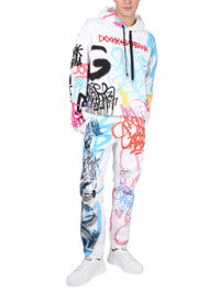 Loose jeans with spray-paint graffiti print