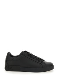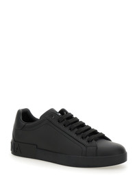 Dolce & Gabbana Men 'Portofino' Black Low Top Sneakers With Logo Lettering Detail In Smooth Leather