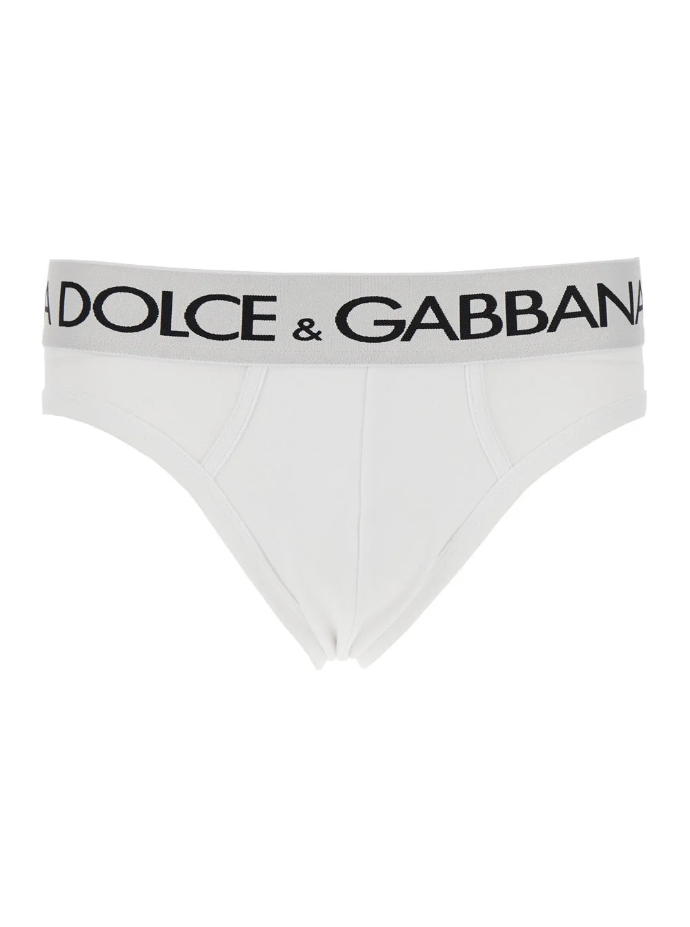 Dolce & Gabbana Men White Briefs With Elastic Waist And Logo Lettering In Cotton Man
