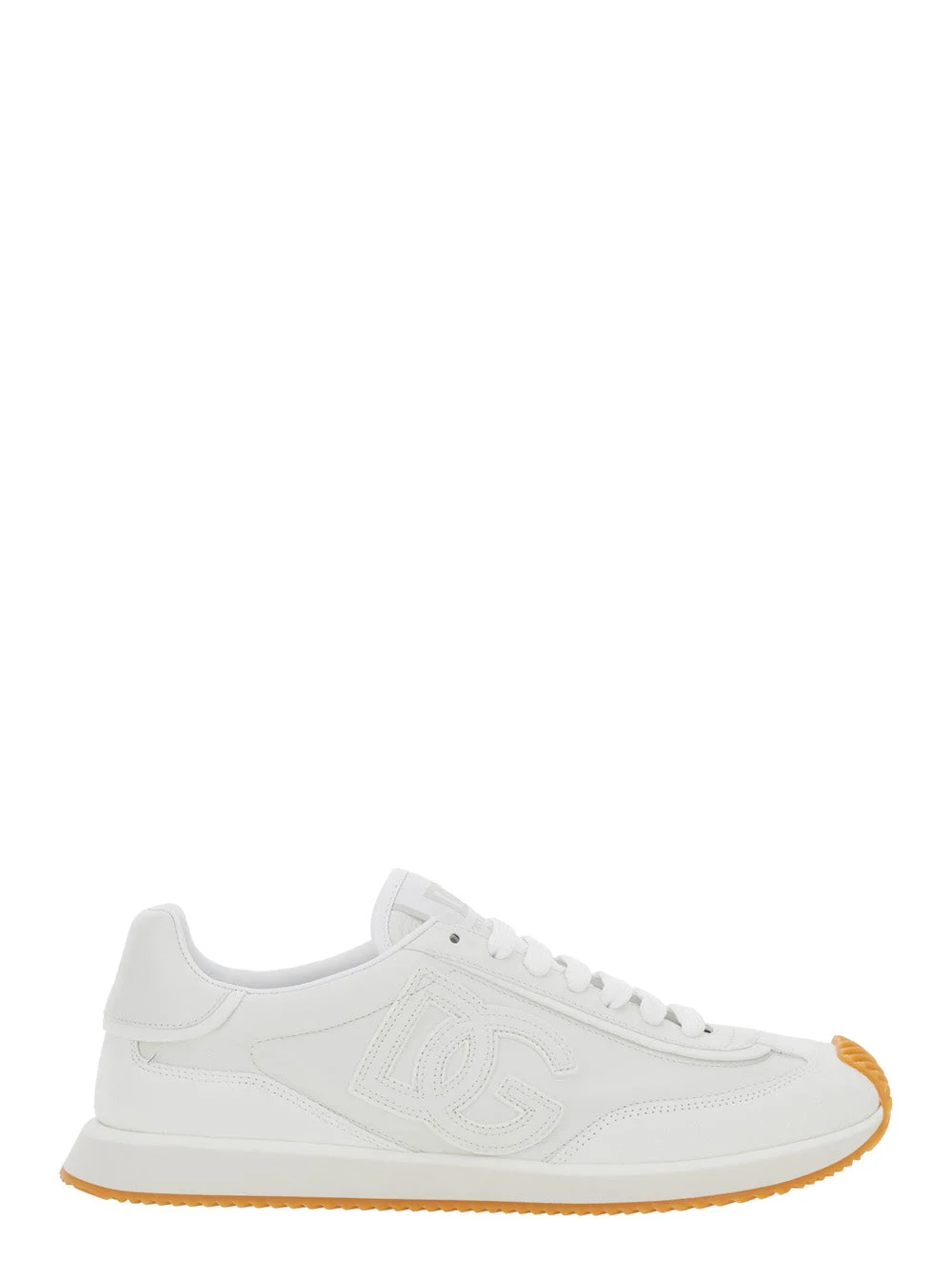 Dolce & Gabbana Men White Low Top Sneakers With Logo Patch On Tongue And Side In Leather Man