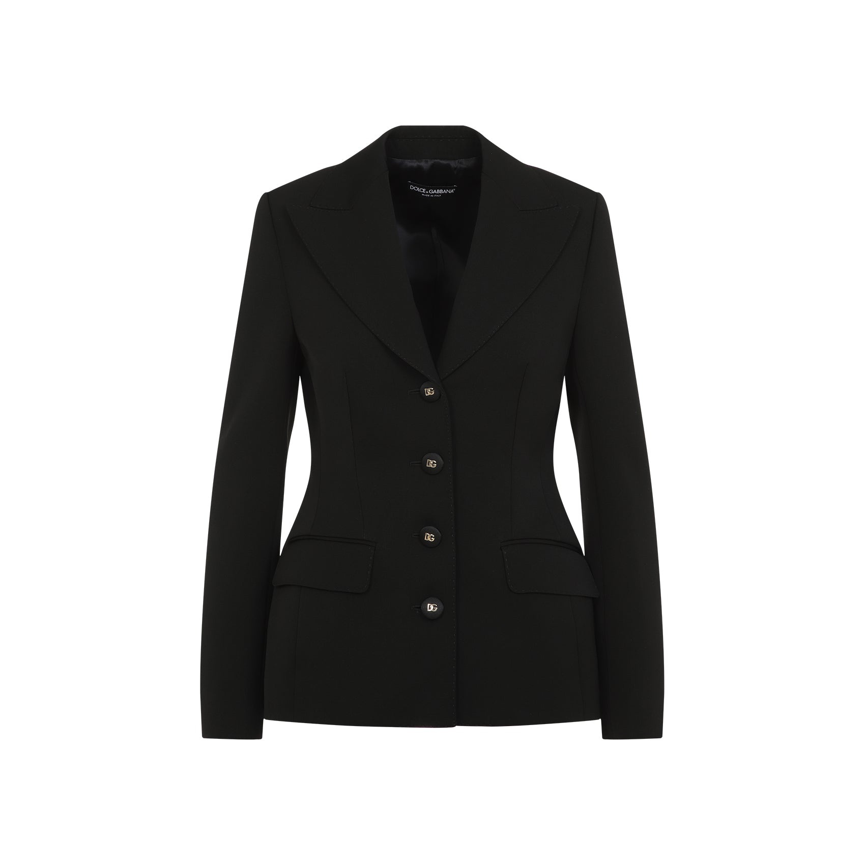 Dolce & Gabbana Black Virgin Wool Jacket. Black virgin wool, single-breasted, peak lapels, branded button fastening, reinforced shoulders, two front flap pockets, log sleeves, buttoned cuffs, hourglass-shaped, lined. Wool | 100%VIRGIN WOOL Size Type: IT SKU: F27DCTFUBGEBlack Our Products Are 100% Genuine. In All Cases We Stand By The Authenticity Of Every Product Sold On Our Site. All sales are final and we only accept returns for quality issue. Buyer is responsible for any import tax/duty if applicable.