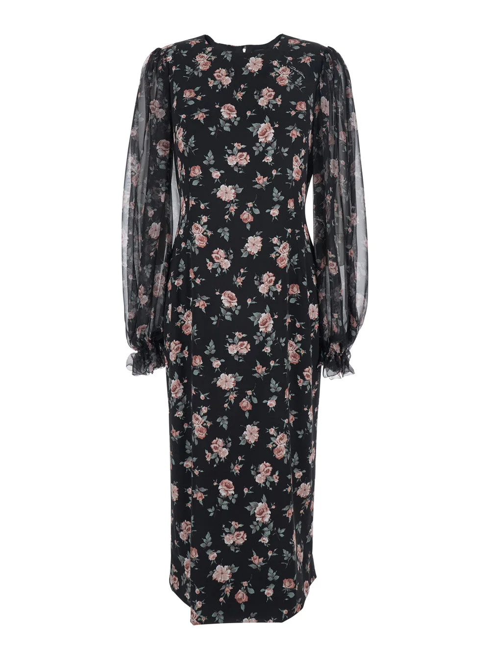 Dress Black Round neck Long sleeves with semi-sheer layer Back closure All-over floral motif Back slit Silk blend Regular fit SKU: F611DTFSA8CHN5XQ Our Products Are 100% Genuine. In All Cases We Stand By The Authenticity Of Every Product Sold On Our Site. All sales are final and we only accept returns for quality issue. Buyer is responsible for any import tax/duty if applicable.
