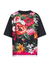 •Ribbed crewneck •Short sleeves, dropped shoulders •Multicolor floral-print silk scarf insert at front •Side slits at bottom •Straight hem •Regular fit •Black color •80% Cotton, 20% Silk •Made in Italy SKU: f8v77zgddcdn0000 Our Products Are 100% Genuine. In All Cases We Stand By The Authenticity Of Every Product Sold On Our Site. All sales are final and we only accept returns for quality issue. Buyer is responsible for any import tax/duty if applicable.