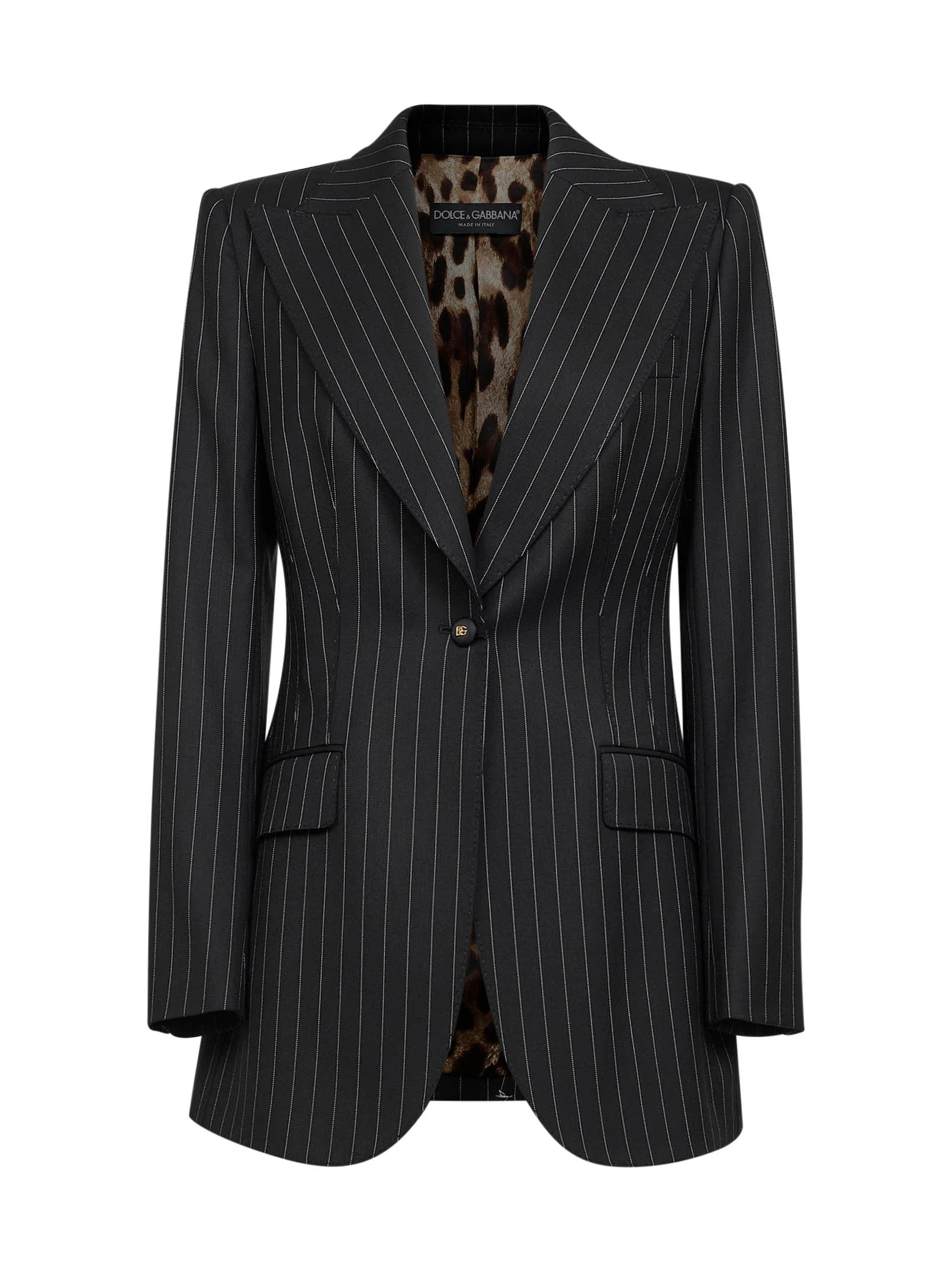 Dolce & Gabbana Women Black Pinstriped Stretch Wool Single-Breasted Jacket