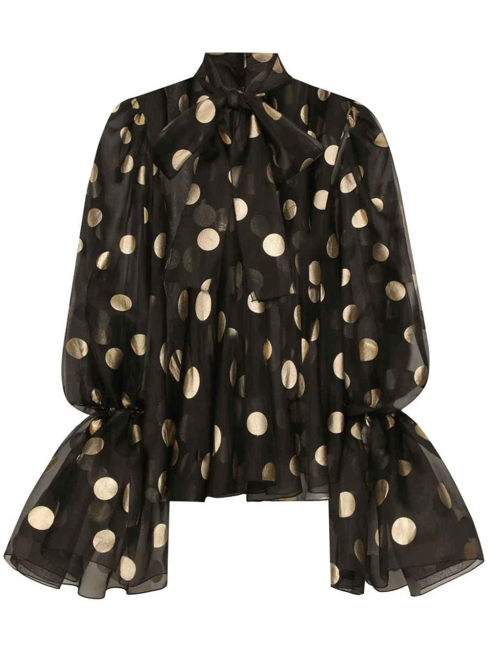 Blouse with ruffles Origin: Italy Characteristics black silk semi-transparent design polka dot embroidery hems with ruffles bishop sleeves American neckline with knot flared design Composition 100% silk Washing instructions Read the manufacturer`s directions Brand ID: F7AI9THS100 Silk | 100%SE KG 0,5 Size Type: IT SKU: F7AI9THS100Black Our Products Are 100% Genuine. In All Cases We Stand By The Authenticity Of Every Product Sold On Our Site. All sales are final and we only accept returns for quality issue. Buyer is responsible for any import tax/duty if applicable.