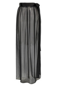 Long silk chiffon skirt with satin belt at the waist. Color: Black Size & Fit: true to size fit Composition: 100% silk Made in: Italy SKU: F4C0ATFU1ATN0000 Our Products Are 100% Genuine. In All Cases We Stand By The Authenticity Of Every Product Sold On Our Site. All sales are final and we only accept returns for quality issue. Buyer is responsible for any import tax/duty if applicable.