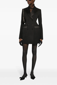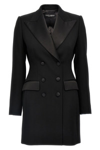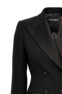 'Dolce' double-breasted tuxedo blazer in stretch wool with button closure, peak lapels, flap pockets, long sleeves, shaped waistband. Color: Black Composition: 83% virgin wool 12% silk 3% polyester 2% elastane Size&Fit: true to size fit SKU: F27CVTFUBGEN0000 Our Products Are 100% Genuine. In All Cases We Stand By The Authenticity Of Every Product Sold On Our Site. All sales are final and we only accept returns for quality issue. Buyer is responsible for any import tax/duty if applicable.