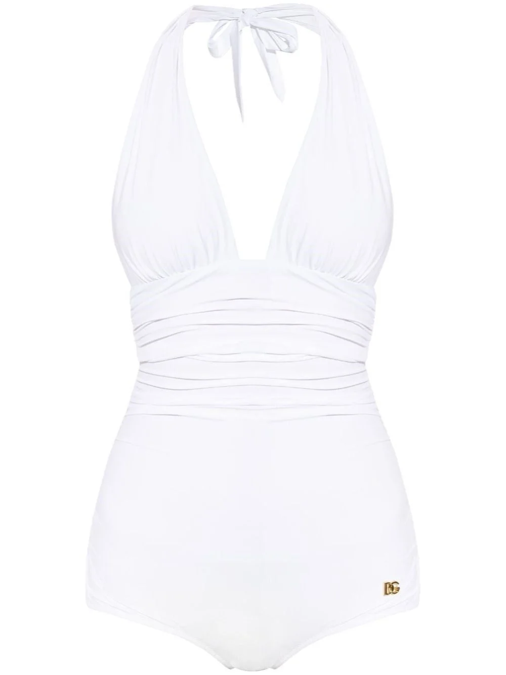 Draped one-piece swimsuit made of sensitive fabric with adjustable ties at the neck. Deep V-neckline in the front and straight back. Triangle cups. Metal D&G logo. 25%EA+75%PA 12%EA+88%PA Made in: IT SKU: O9A06JONO12W0800 Our Products Are 100% Genuine. In All Cases We Stand By The Authenticity Of Every Product Sold On Our Site. All sales are final and we only accept returns for quality issue. Buyer is responsible for any import tax/duty if applicable.