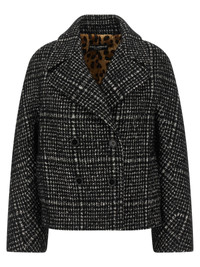 Houndstooth patterned virgin wool, mohair, alpaca and silk short coat, animal print lining, double-breasted caban style with front button closure, lapel collar, pockets, long sleeves with dropped shoulders. oversized fit 1%CO 9% PA 5% PL 11% SE 12% WM 12% WP 50% WV SKU: F27GDTFQZAOS8100 Our Products Are 100% Genuine. In All Cases We Stand By The Authenticity Of Every Product Sold On Our Site. All sales are final and we only accept returns for quality issue. Buyer is responsible for any import tax/duty if applicable.