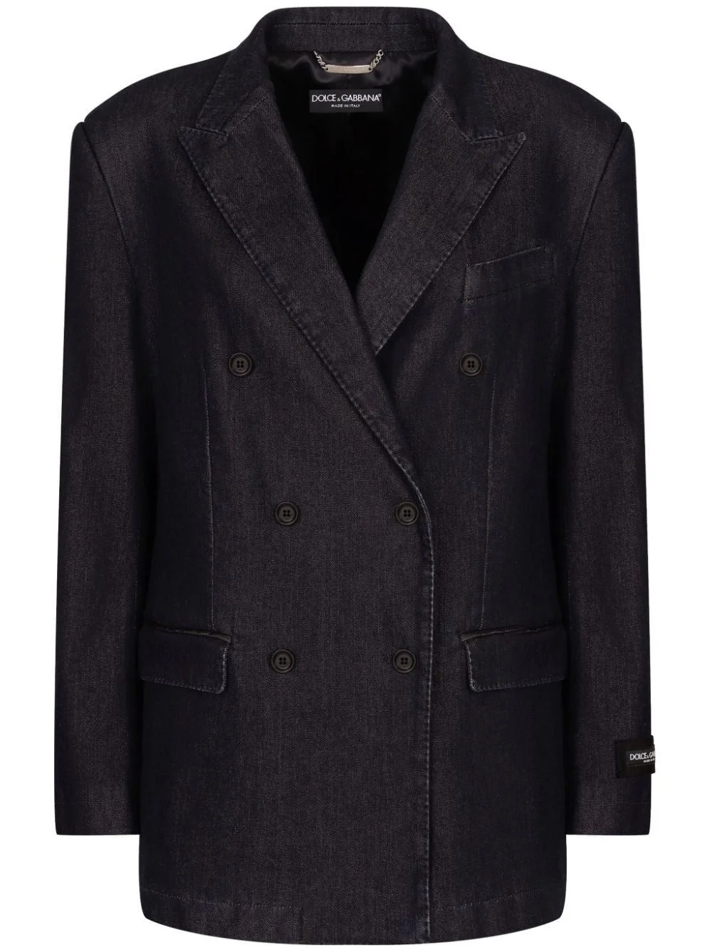 Double-breasted silk and cotton denim Taormina-fit jacket