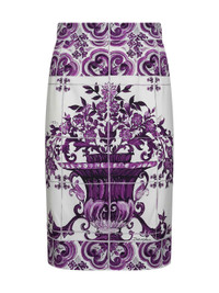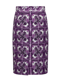 Dolce & Gabbana Women Maiolica Print Stretch Silk Skirt