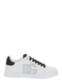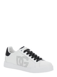 Dolce & Gabbana Women 'Portofino Light' White Sneakers With Perforated Logo On The Side And Logo Pat