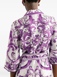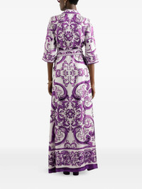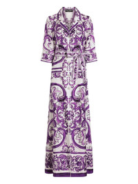 Long Majolica-print silk dressing robe