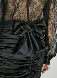 Short draped satin skirt with side bow