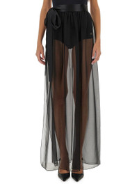 Long silk chiffon skirt with belt