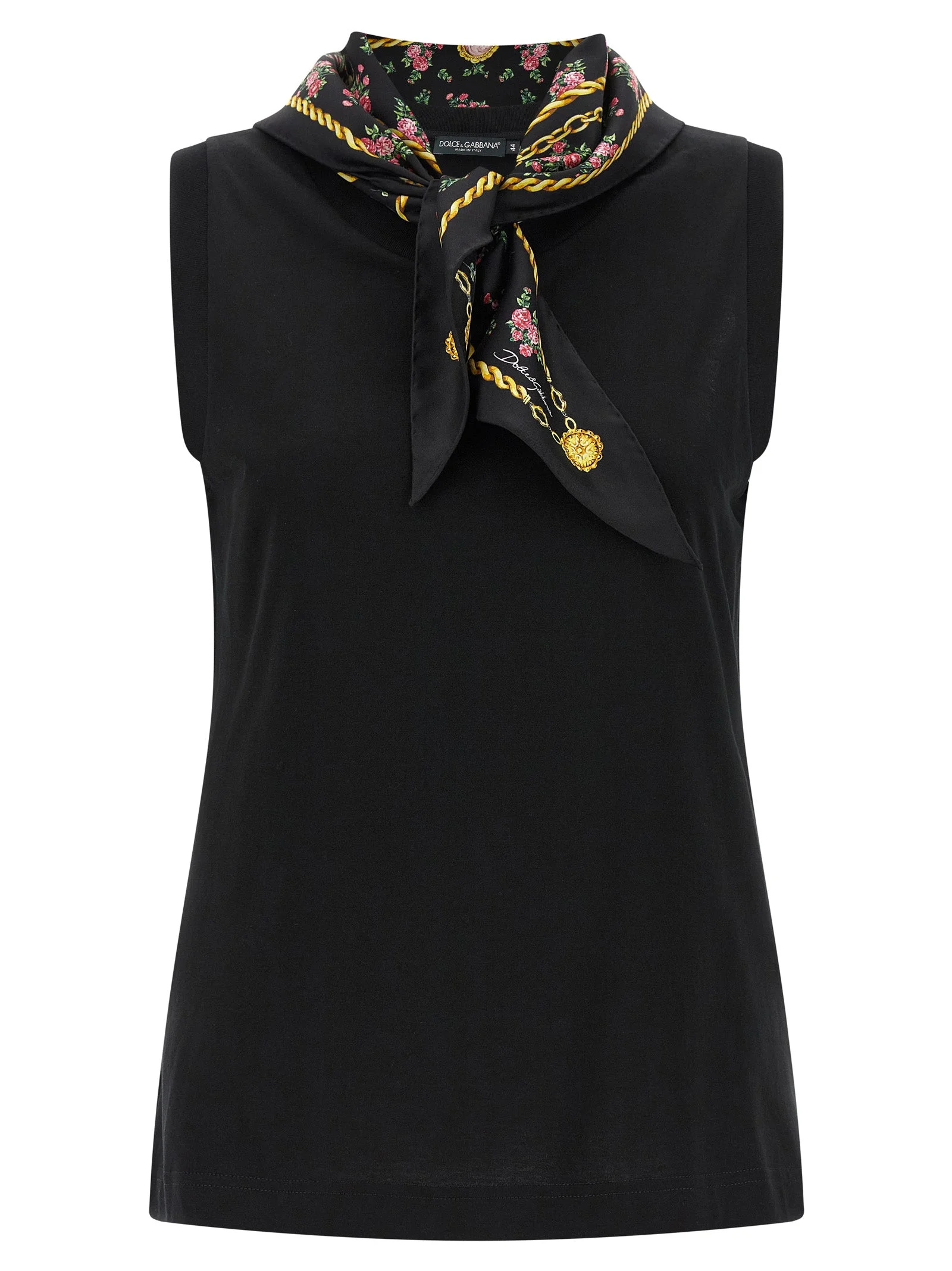 Cotton jersey T-shirt with tone-on-tone logo embroidery on the front, crew neck, sleeveless, triangle silk scarf with 'Bouquet' print fixed on the neckline with buttons and removable. true to size fit 100% cotton SKU: F8W29ZGDDO7N0000 Our Products Are 100% Genuine. In All Cases We Stand By The Authenticity Of Every Product Sold On Our Site. All sales are final and we only accept returns for quality issue. Buyer is responsible for any import tax/duty if applicable.