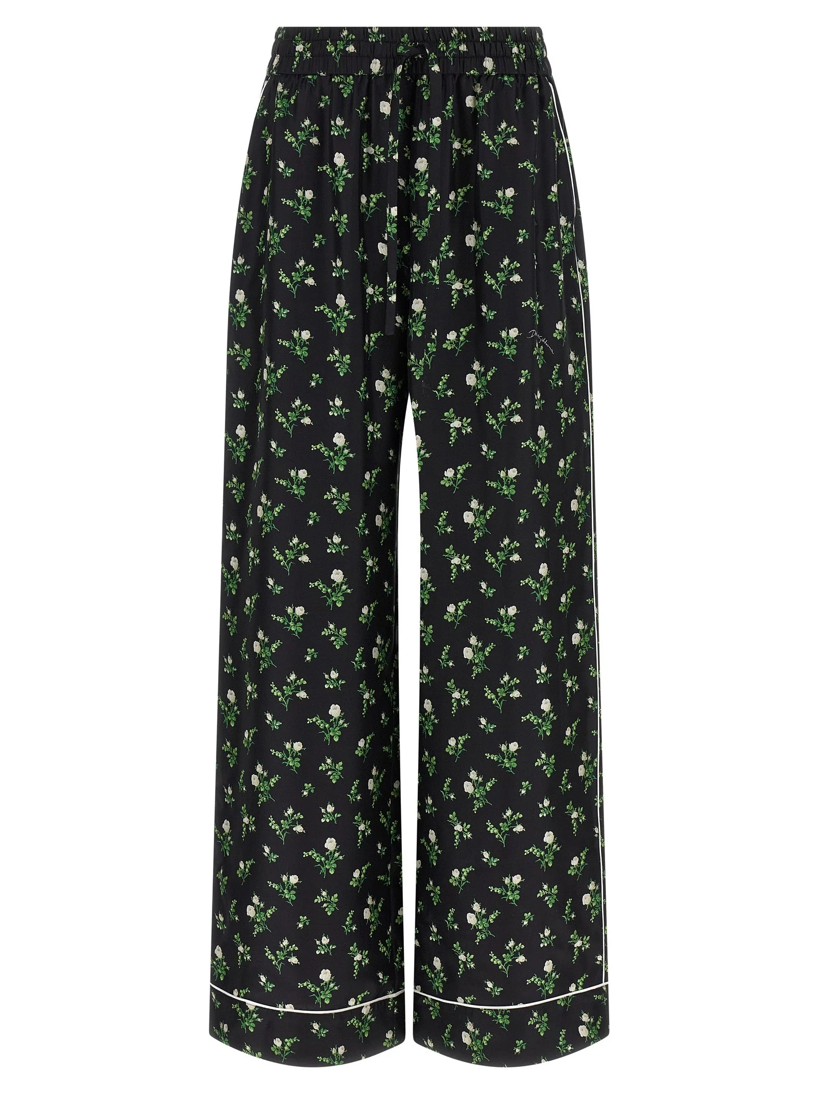 All-over 'Roselline e Mughetti' print twill pants with solid color piping, 'Vanity' model, 'Dolce' waist with elastic and drawstring, wide and straight leg, French pockets. The differences in print placement you might find on this product is a characteristic of Dolce&Gabbana's Handmade products. A peculiarity that makes each garment or accessory unique and exclusive. 100% silk SKU: FTDKTTIS13GHX6CB Our Products Are 100% Genuine. In All Cases We Stand By The Authenticity Of Every Product Sold On Our Site. All sales are final and we only accept returns for quality issue. Buyer is responsible for any import tax/duty if applicable.