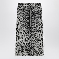 Charmeuse calf-length pencil skirt with leopard print