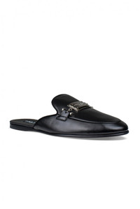 Black mules in Dolce Gabbana leather. Silver metal logo plate at front. Rounded toe. Made in Italy. Size Type: IT SKU: A80312AW6948B577 Our Products Are 100% Genuine. In All Cases We Stand By The Authenticity Of Every Product Sold On Our Site. All sales are final and we only accept returns for quality issue. Buyer is responsible for any import tax/duty if applicable.