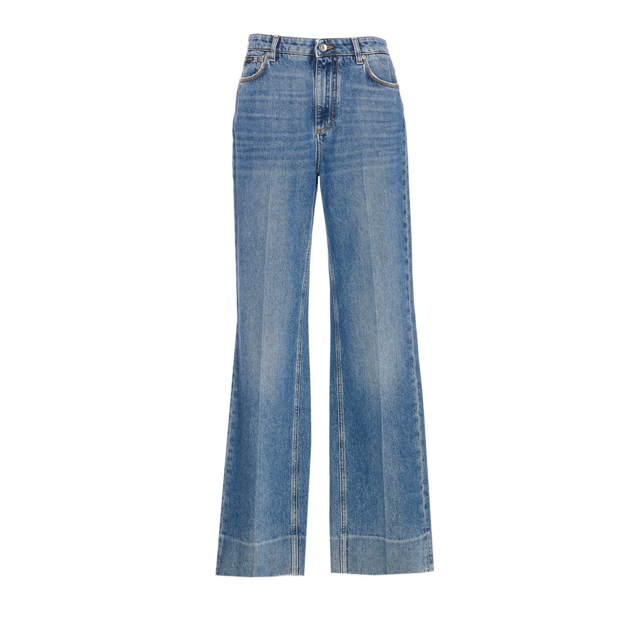 kabia_id: 721290 Made In: Italy Composition: 100%cotton Color: Blue Measures: eu size (it) Gender: Female Season: Fall Winter 2025 Logo: Logo on back Model is wearing size: 42 Trousers closing: Zip fly with button fastening Pockets: Five pockets Model: Flare Size Type: IT SKU: FTC79DG8NR5S9001 Our Products Are 100% Genuine. In All Cases We Stand By The Authenticity Of Every Product Sold On Our Site. All sales are final and we only accept returns for quality issue. Buyer is responsible for any import tax/duty if applicable.