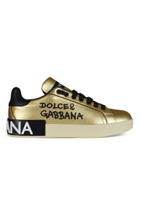 Portofino Dolce&Gabbana sneakers in gold leather. Black Dolce&Gabbana inscription printed on the side. Black leather counter in contrast. Black flat laces. Leather insole with logo label. Logo rubber outsole with black lame leather insert and white micro-injected logo. 100% calf leather. Made in Italy. Size Type: IT SKU: CK1544AW329H02LX Our Products Are 100% Genuine. In All Cases We Stand By The Authenticity Of Every Product Sold On Our Site. All sales are final and we only accept returns for quality issue. Buyer is responsible for any import tax/duty if applicable.