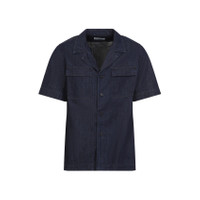 Dries Van Noten Cameron Blue Cotton Shirt. Dark blue cotton denim, bowling collar, front button fastening, two flap pockets on the front, short sleeves, black viscose panel on the back, straight hem. Cotton | 80%COTTON 20%VISCOSE Size Type: IT SKU: 2510207271553Blue Our Products Are 100% Genuine. In All Cases We Stand By The Authenticity Of Every Product Sold On Our Site. All sales are final and we only accept returns for quality issue. Buyer is responsible for any import tax/duty if applicable.