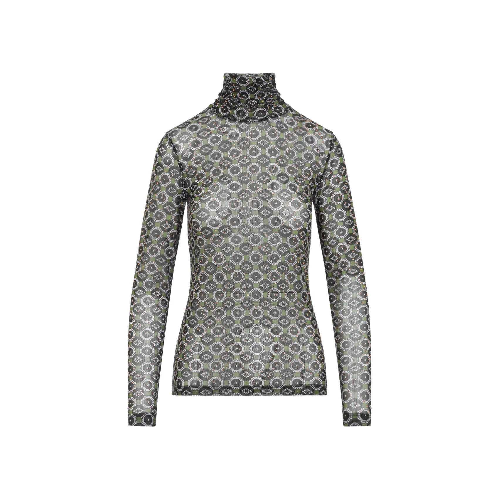 Dries Van Noten Hoyser Green Polyamide Sweater. Crafted from green mesh, turtleneck, geometric graphic print all over, long sleeves, straight hem, slim fit. Polyamide | 94%POLYAMIDE 6%ELASTANE Size Type: INT SKU: 2520111252623Green Our Products Are 100% Genuine. In All Cases We Stand By The Authenticity Of Every Product Sold On Our Site. All sales are final and we only accept returns for quality issue. Buyer is responsible for any import tax/duty if applicable.