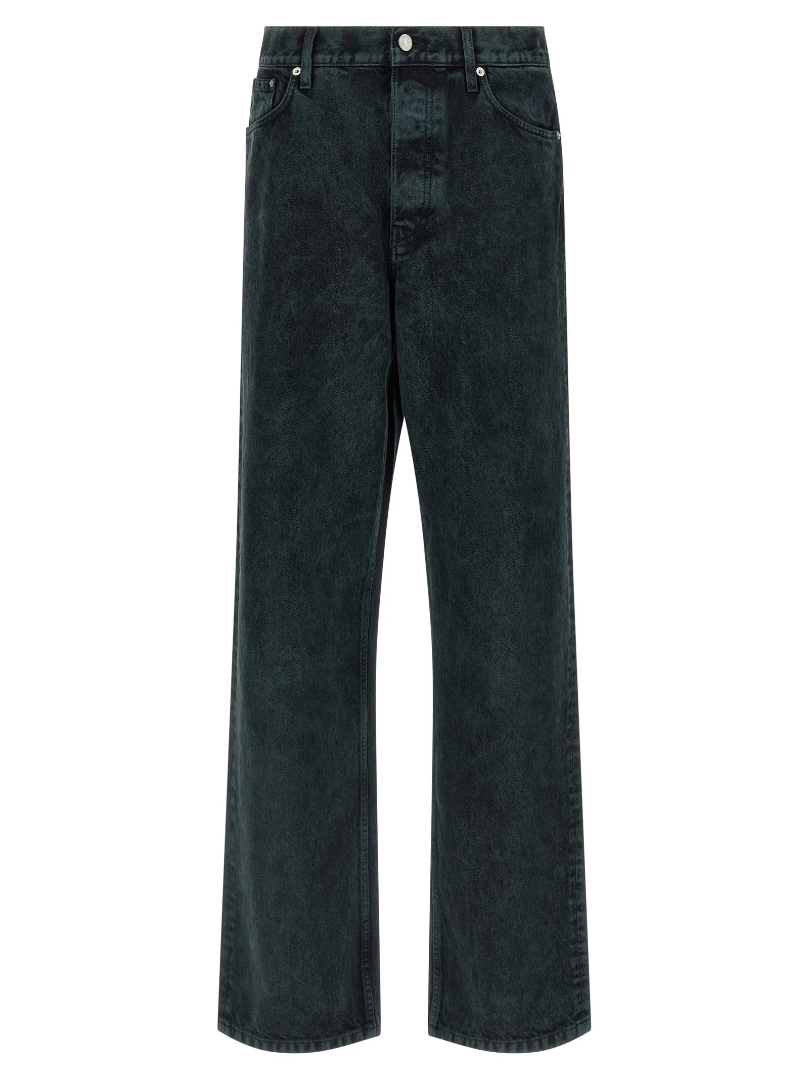 Pine stonewashed cotton denim jeans with medium waist, wide straight leg, front button closure, five pockets, and leather logo label at the back. Loose fit 100% cotton SKU: 2520209272391508 Our Products Are 100% Genuine. In All Cases We Stand By The Authenticity Of Every Product Sold On Our Site. All sales are final and we only accept returns for quality issue. Buyer is responsible for any import tax/duty if applicable.