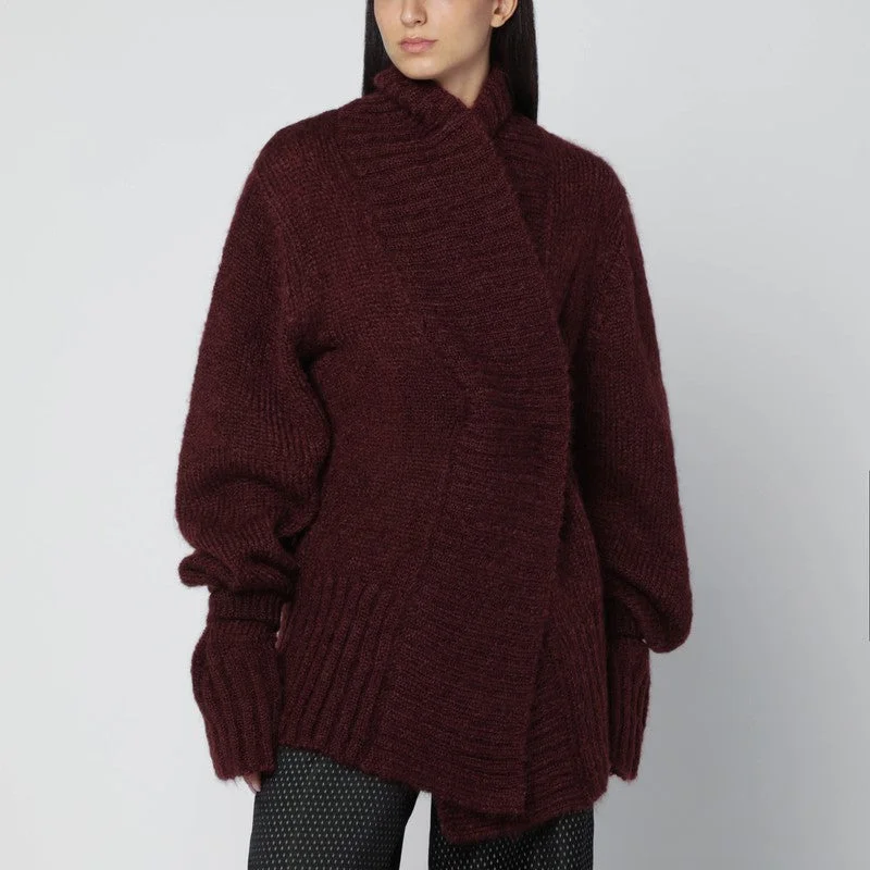 Dries Van Noten Oversized Burgundy Mohair-Blend Sweater Women