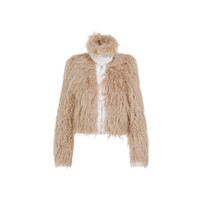 Beige Cropped Faux-Fur Jacket