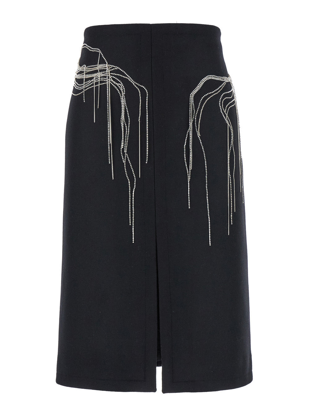 Midi skirt Black High waist Front single slit Rear concealed zip closure Maxi beaded embellishments on front and rear Straight hem Wool blend Regular fit SKU: 0108469223900 Our Products Are 100% Genuine. In All Cases We Stand By The Authenticity Of Every Product Sold On Our Site. All sales are final and we only accept returns for quality issue. Buyer is responsible for any import tax/duty if applicable.
