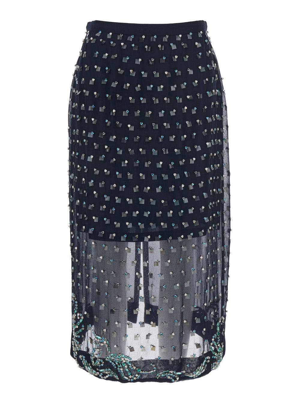 Skirt Blue Rhinestone embellishments on the front Rear concealed zip closure Single rear slit Rhinestoned hem Viscose Regular fit SKU: 0108702314509 Our Products Are 100% Genuine. In All Cases We Stand By The Authenticity Of Every Product Sold On Our Site. All sales are final and we only accept returns for quality issue. Buyer is responsible for any import tax/duty if applicable.