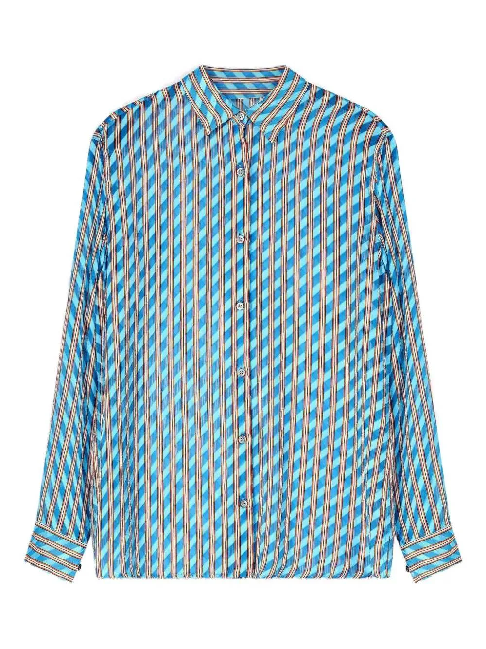 Striped Shirt Features Turquoise Striped pattern Button closure Long sleeves Buttoned hems Composition 60% viscose, 40% silk Washing Instructions Read the manufacturer`s instructions ID 2611307423149 Viscose | 60%CV 40%SE 0,5 Size Type: FR SKU: 2611307423149Blue Our Products Are 100% Genuine. In All Cases We Stand By The Authenticity Of Every Product Sold On Our Site. All sales are final and we only accept returns for quality issue. Buyer is responsible for any import tax/duty if applicable.