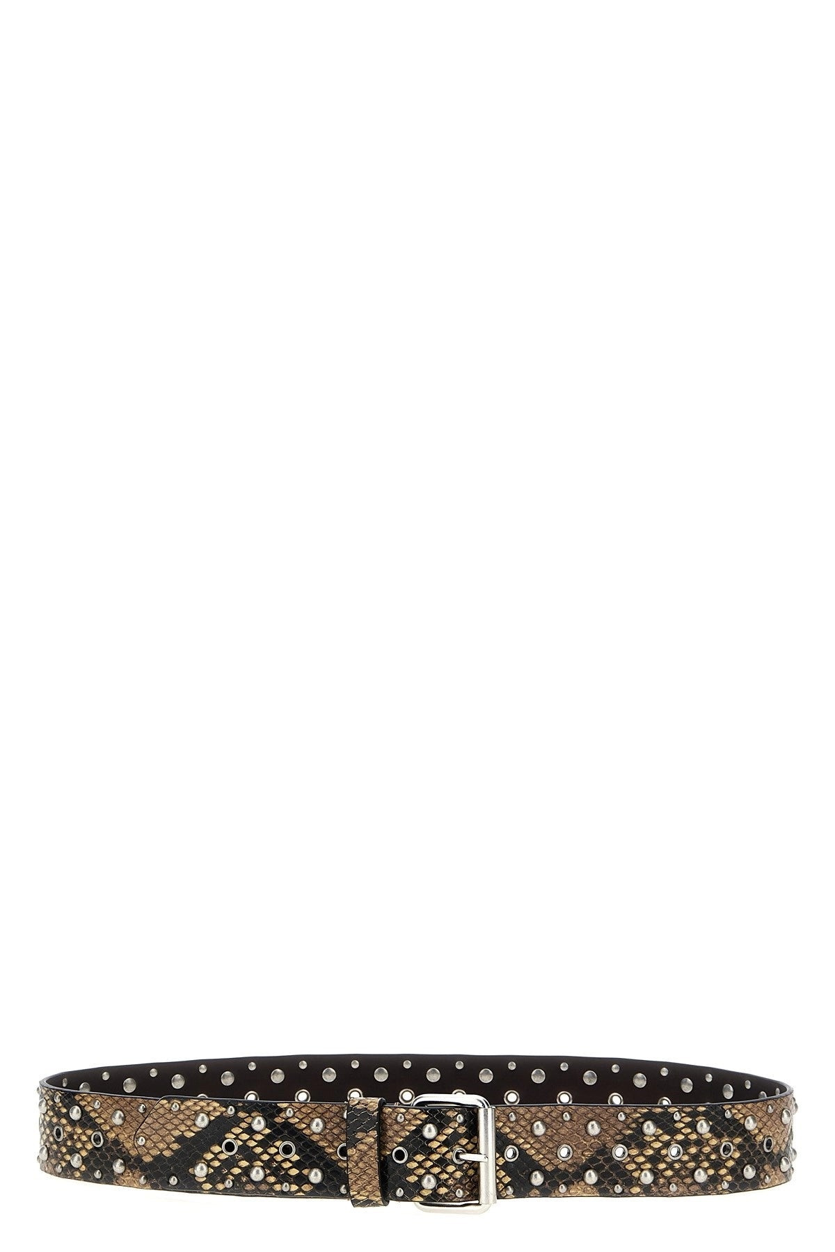 Studded snake-effect leather belt Snake print