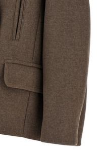 'Vafel' melange wool blend coat, viscose and cotton blend lining, double-breasted style with front button closure, mirror lapels, pockets, long sleeves with dropped shoulders, padded shoulders, ruffle at the back, asymmetrical hem. Color: Gray Size & Fit: oversized fit Composition: 70% wool, 30% polyamide Made in: Romania SKU: 2520105402216811 Our Products Are 100% Genuine. In All Cases We Stand By The Authenticity Of Every Product Sold On Our Site. All sales are final and we only accept returns for quality issue. Buyer is responsible for any import tax/duty if applicable.