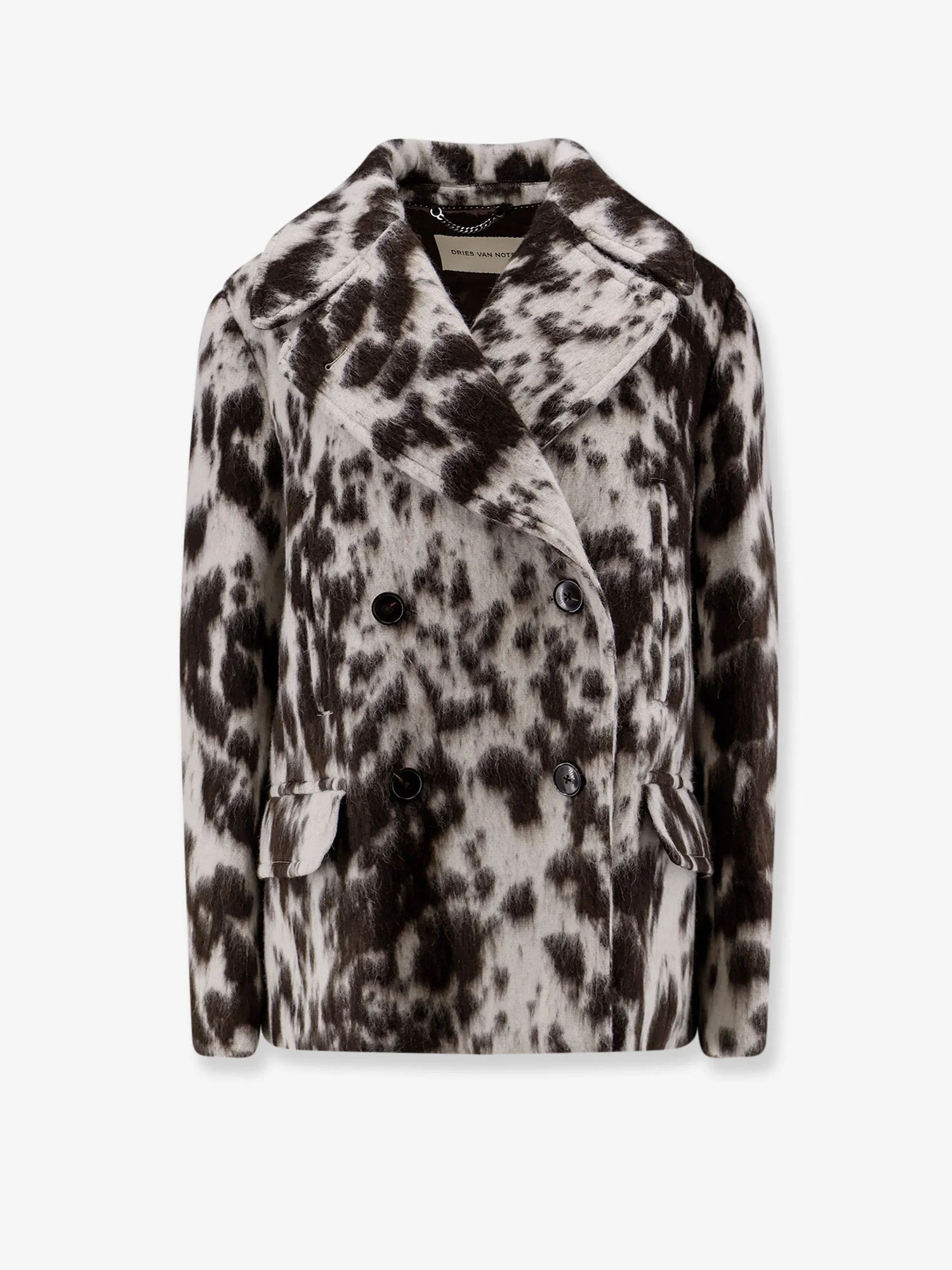 Brand: DRIES VAN NOTEN Product reference:2520105402288 Color reference:703 Color:White Season:25A Gender:Woman Category 1:Abbigliamento Category 2:Coats Made in:ROMANIA Double-breasted Button closure Wide lapel Two vertical pockets Two flap pockets 51% wool, 19% polyester, 15% acrylic, 12% alpaca, 3% polyamide Lining: 100% viscose SKU: 2520105402288703 Size Type: INT SKU: 252010540228803 Our Products Are 100% Genuine. In All Cases We Stand By The Authenticity Of Every Product Sold On Our Site. All sales are final and we only accept returns for quality issue. Buyer is responsible for any import tax/duty if applicable.