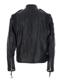 Dsquared2 Men 'Ducati X D2' Black Jacket With Mandarin Collar And Logo Embossed On The Back In Leath