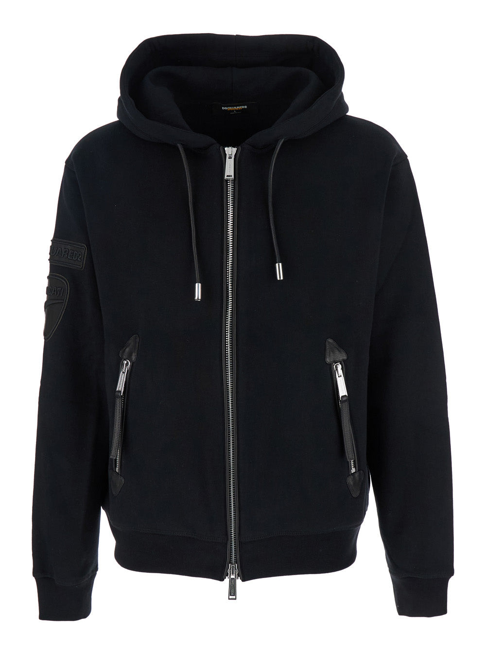 Dsquared2 Men 'Ducati X D2' Black Sweatshirt With Drawstring Hood And Maxi Logo Lettering On The Rea