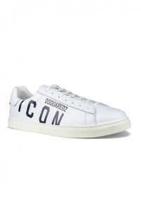 <p>Dsquared2 white leather low top sneakers. Black Dsquared2 Icon logo diagonally across the outside. White leather counter. White laces. White rubber sole. Made in Italy.</p> Size Type: IT SKU: SNM000501503204M072 Our Products Are 100% Genuine. In All Cases We Stand By The Authenticity Of Every Product Sold On Our Site. All sales are final and we only accept returns for quality issue. Buyer is responsible for any import tax/duty if applicable.