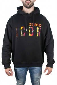 Dsquared2 black hooded sweatshirt. ICON logo print on front. Black, yellow and orange palm graphic effect. V-neck seam. Ribbed edges. 100% cotton. Made in Italy. Size Type: INT SKU: S79GU0096S25516900C Our Products Are 100% Genuine. In All Cases We Stand By The Authenticity Of Every Product Sold On Our Site. All sales are final and we only accept returns for quality issue. Buyer is responsible for any import tax/duty if applicable.