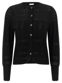 'Trio' openwork cashmer blend wool cardigan, crew neck, front button closure, long sleeves with cuffs True to size fit 85% wool 15% cashmere SKU: 092512NOIR Our Products Are 100% Genuine. In All Cases We Stand By The Authenticity Of Every Product Sold On Our Site. All sales are final and we only accept returns for quality issue. Buyer is responsible for any import tax/duty if applicable.