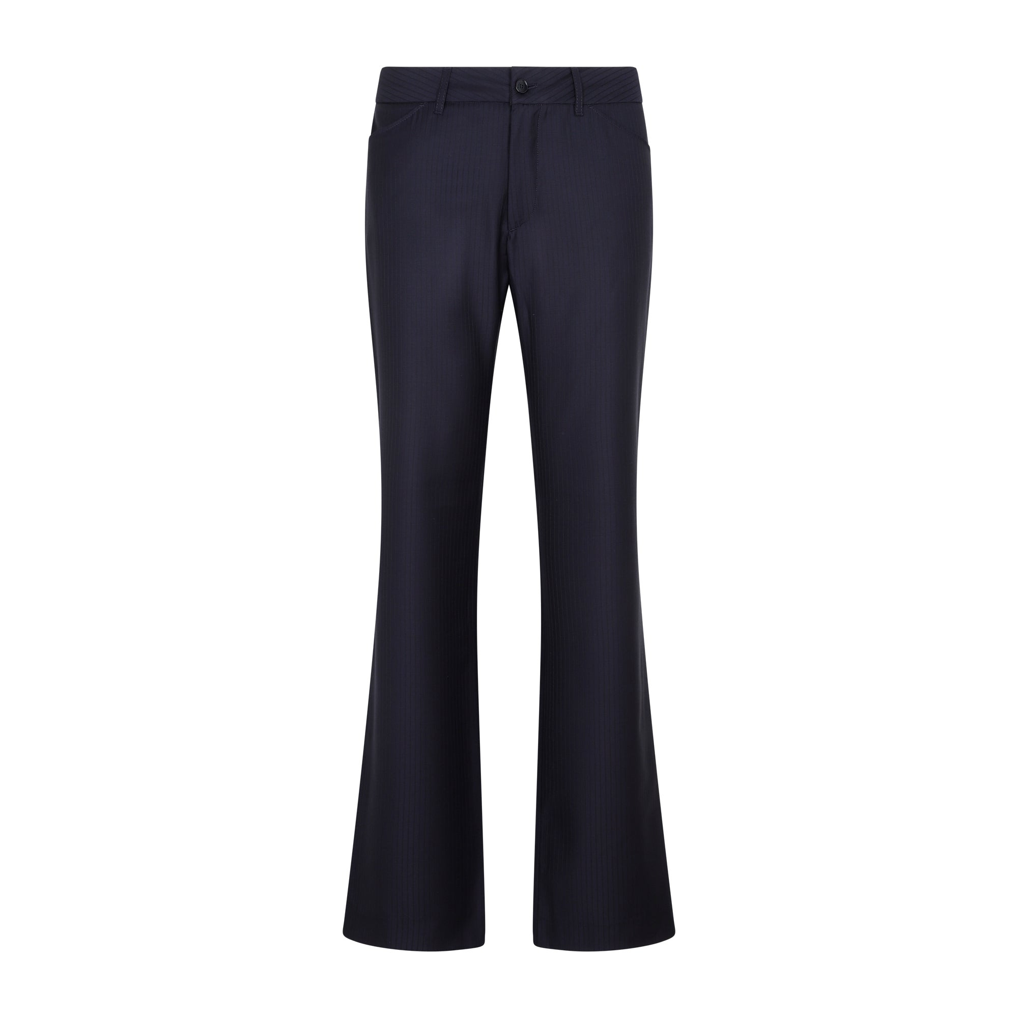 Etro Blue Wool Bootcut Trousers. Crafted in pure blue virgin wool with a tonal pinstripe print. Front concealed fastening with visible button, belt loops, two front slit pockets, two back buttoned pockets, bootcut leg, straight hem. Wool | 100%VIRGIN WOOL Size Type: IT SKU: 1W7791142Blue Our Products Are 100% Genuine. In All Cases We Stand By The Authenticity Of Every Product Sold On Our Site. All sales are final and we only accept returns for quality issue. Buyer is responsible for any import tax/duty if applicable.