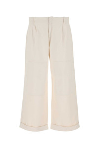 Etro Men Melange Ivory Stretch Cotton Wide-Leg Pant