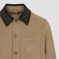 Etro Dark Beige Cotton Outerwear. Pure dark beige cotton jacket, dark brown velvet pointed collar, front buttoned fastening, chest patch pocket, chest beige embroidered logo, side flap buttoned pockets, dropped shoulders, long sleeves, buttoned cuffs, straight hem. Cotton | 100%COTTON Size Type: INT SKU: MRBA008199TU5M0Nude&Neutrals Our Products Are 100% Genuine. In All Cases We Stand By The Authenticity Of Every Product Sold On Our Site. All sales are final and we only accept returns for quality issue. Buyer is responsible for any import tax/duty if applicable.