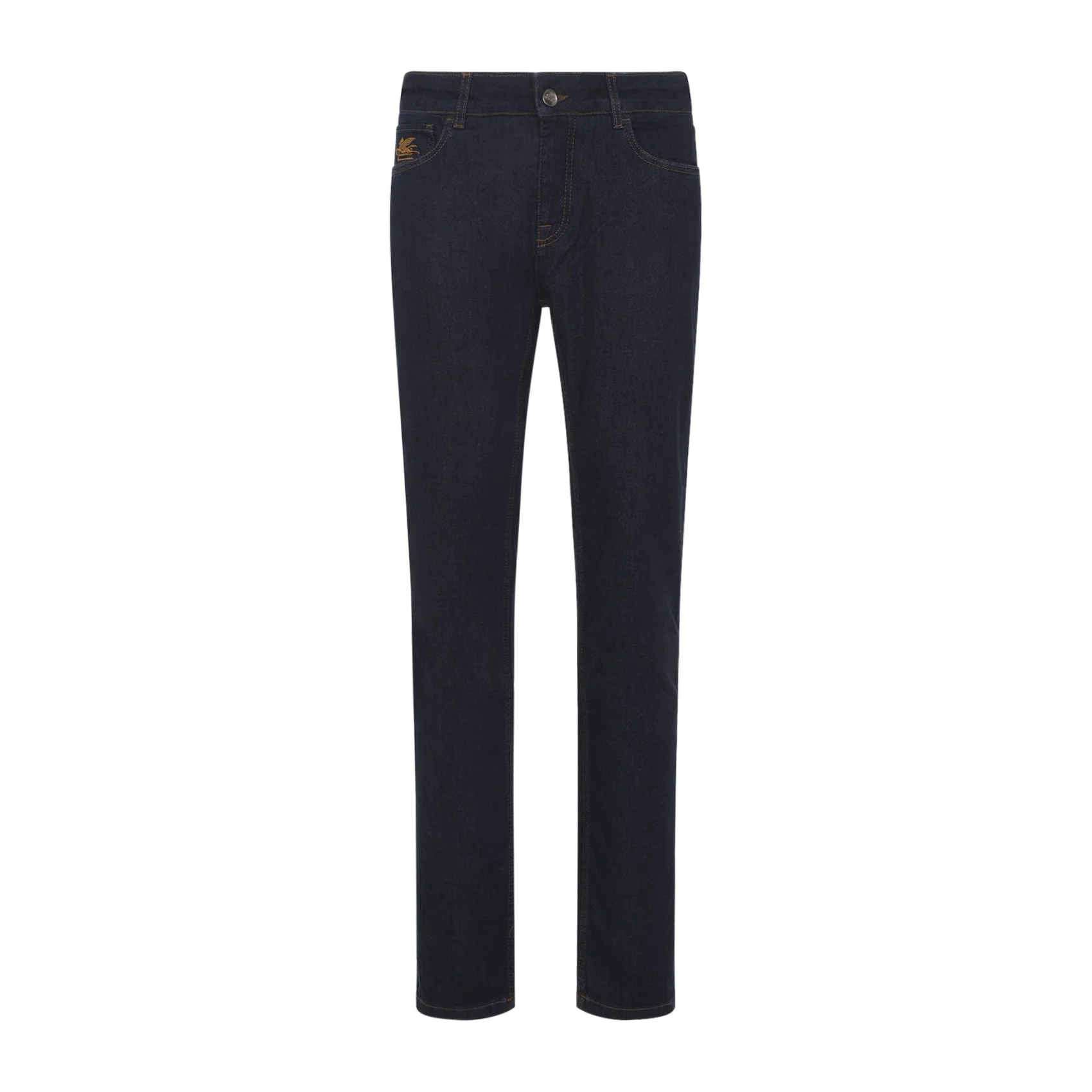 Etro Roma Dark Blue Cotton Jeans. Five-pocket jeans crafted from dark blue cotton denim with slight stretch, it features belt loops, front button and zip fly, the Pegaso logo embroidered on the front, a branded leather label at the back of the waist, and a straight leg. Cotton | 99%COTTON 1%ELASTANE Size Type: CM SKU: MRNB0004AD333Blue Our Products Are 100% Genuine. In All Cases We Stand By The Authenticity Of Every Product Sold On Our Site. All sales are final and we only accept returns for quality issue. Buyer is responsible for any import tax/duty if applicable.