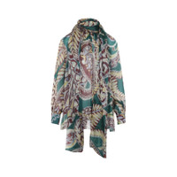 Etro Multicolor Silk Ruched Top. Pure silk top, stand-up collar with scarf design, long sleeves, buttoned cuffs, asymmetric hem, draped effect. Green background with white, yellow and brown paisley design all-over. Silk | 100%SILK Size Type: IT SKU: WRJA015099SA1K3Multicolour Our Products Are 100% Genuine. In All Cases We Stand By The Authenticity Of Every Product Sold On Our Site. All sales are final and we only accept returns for quality issue. Buyer is responsible for any import tax/duty if applicable.